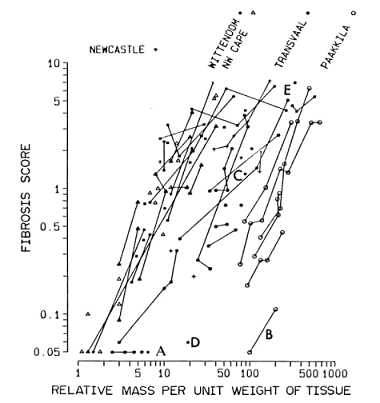 35. Churg et al. “Mineralogical parameters related to amosite asbestos-induced fibrosis in humans” Am Rev Resp Dis 142: 1331-1336, 1990.