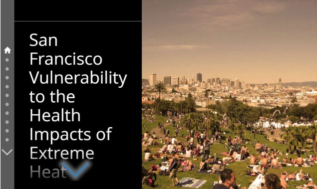 - The San Francisco Climate and Health Program created a StoryMap illustrating a recent assessment of San Francisco's vulnerability to the health impacts of extreme heat.